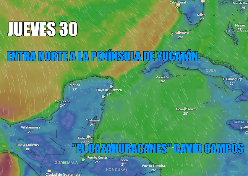 Este 30 de octubre entra norte a la península de Yucatán y el 4 o 5 de noviembre pudiéramos tener una baja presión o ciclón